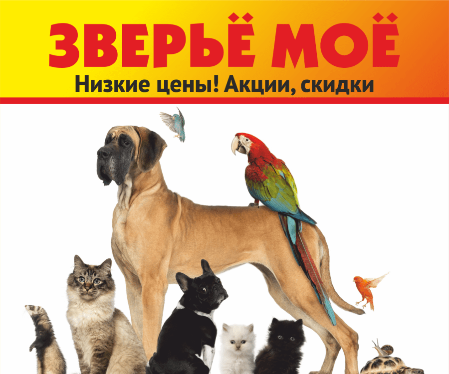 Зоомагазин "Зверье мое" приглашает Вас за товарами для ваших любимых питомцев. В нашем магазине Вы так же можете приобрести лекарственные препараты для животных, игрушки, корма, а еще питомцев!